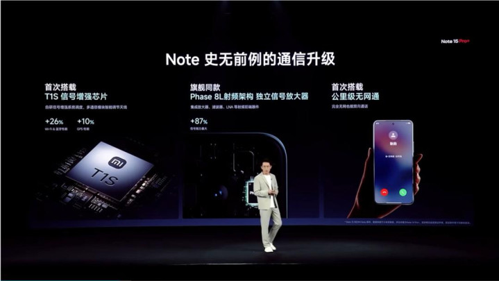 除了上述的这些小功能外,这次 Note 15 Pro+ 还加入了最新的澎湃 T1S 信号芯片以及公里级的无网通信功能。